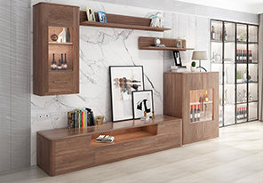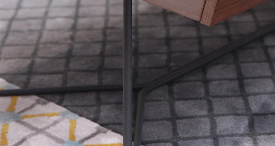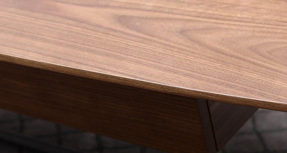 将北美进口黑胡桃木木皮拼贴于茶几饰面,只选取厚度均匀、纹理优美的基材,更纯正地保留天然的原木纹理和色泽。