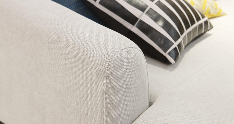 沙发面料为麻料摩根布,采用立体混线色织工艺,肌理如代码雨在空间倾泻流动,视觉效果动感酷炫,同时兼具细腻有型的挺阔质感,拥有不易变形起球的特质。